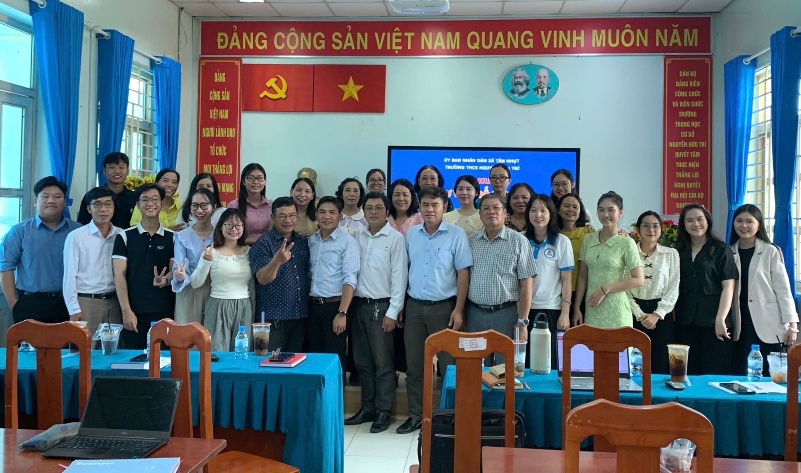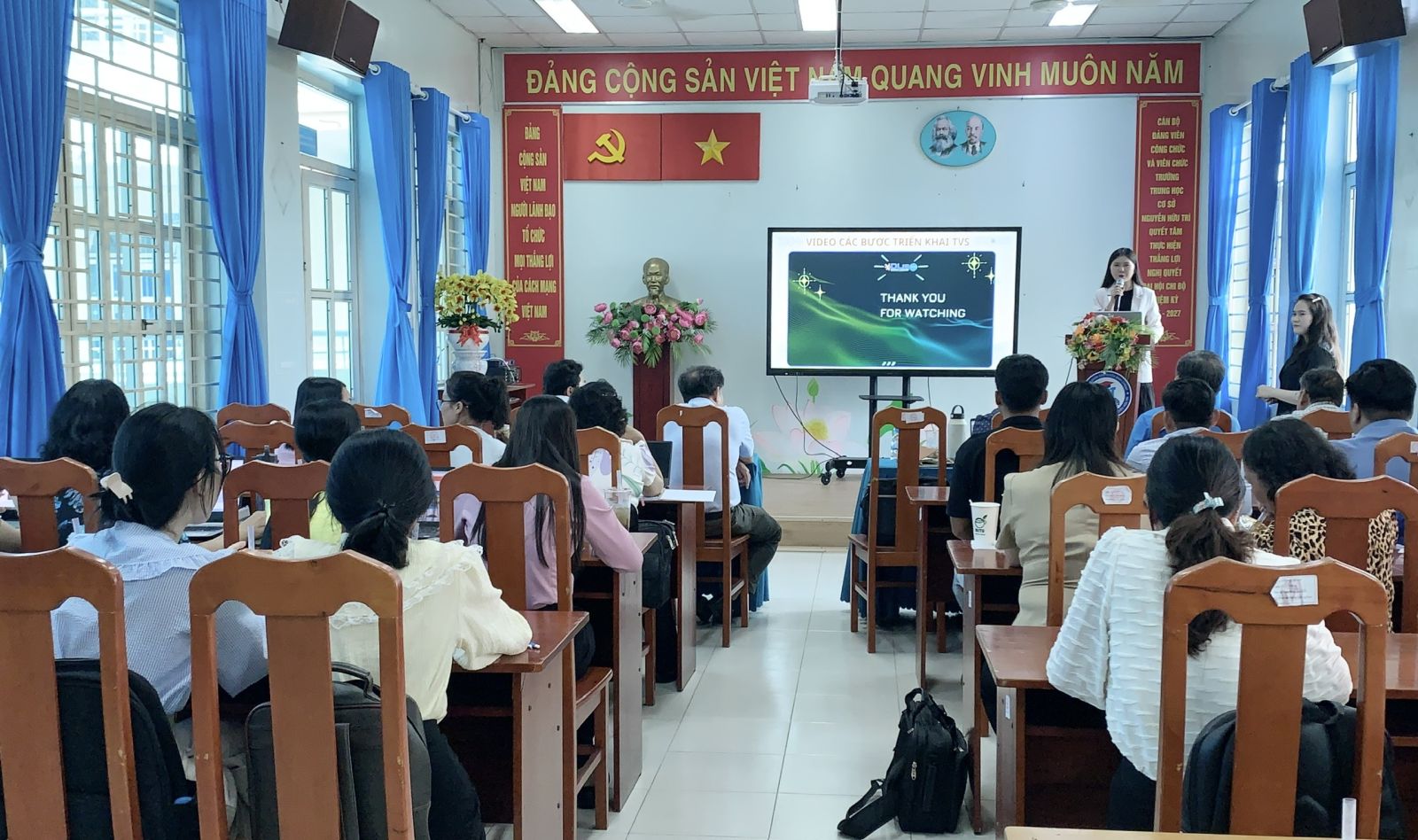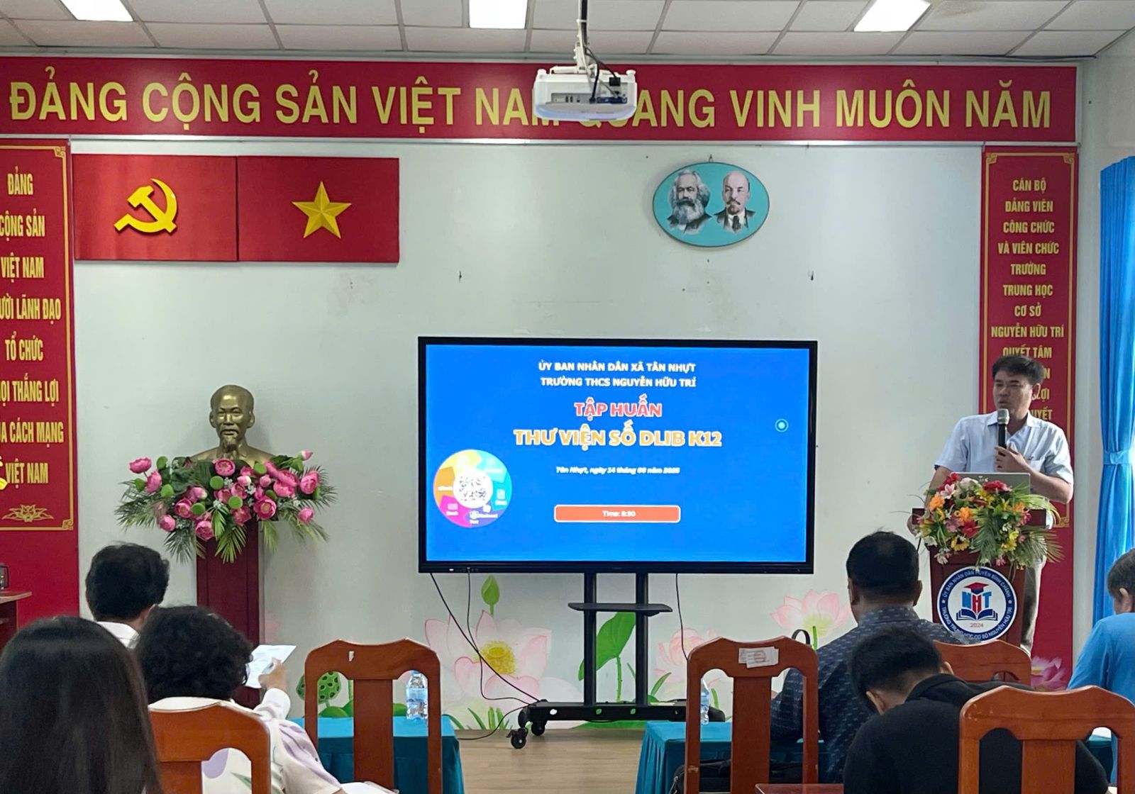 Sáng ngày 14/08/2025, Trường THCS Nguyễn Hữu Trí (Xã Tân Nhựt, TP. Hồ Chí Minh) đã tổ chức buổi tập huấn trực tiếp Thư viện số DLib K12, thu hút sự tham gia nhiệt tình của đông đảo cán bộ giáo viên nhà trường.