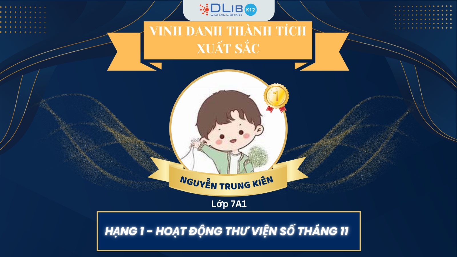 Với điểm thành tích trên thư viện sốcao nhất toàn trường, em đã thể hiện tinh thần tự học bền bỉ và thái độ nghiêm túc trong việc khai thác tri thức từ Thư viện số. Trung Kiên không chỉ duy trì thói quen truy cập hằng ngày mà còn chủ động tìm kiếm các tài liệu nâng cao phục vụ nhiều môn học. Thành tích này được thầy cô đánh giá rất cao vì phản ánh đúng năng lực tự học của em. Vai trò tiên phong của Trung Kiên đã trở thành tấm gương cho các bạn cùng trang lứa.