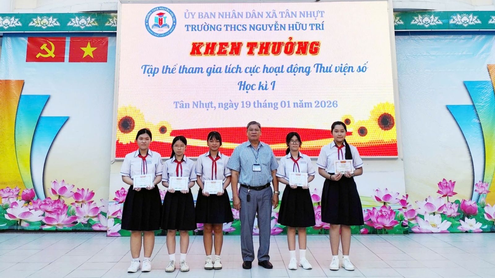Bên cạnh việc tuyên dương học sinh, hoạt động còn thể hiện sự chủ động của Trường THCS Nguyễn Hữu Trí trong công tác chuyển đổi số giáo dục. Nhà trường đã từng bước đầu tư, hoàn thiện hệ thống Thư viện số để phục vụ nhu cầu học tập của học sinh. Việc đưa học liệu số vào giảng dạy và tự học giúp học sinh tiếp cận kiến thức linh hoạt hơn về thời gian và không gian. Đây là hướng đi phù hợp với yêu cầu đổi mới giáo dục trong giai đoạn hiện nay. Thư viện số đang dần trở thành một phần không thể thiếu trong hoạt động dạy và học của nhà trường.